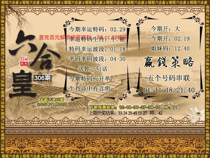 | 300期:发财黑白✤【白肖】✤开虎40准 |